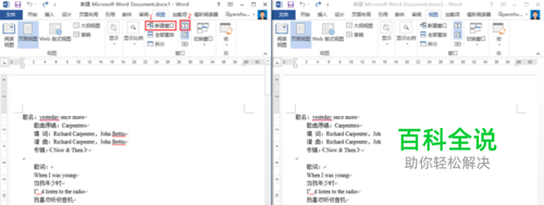 打开要编辑的word文档,选择视图选项卡,可看见下面功能区窗口上面有3组命令,这些命令是需要用到的。