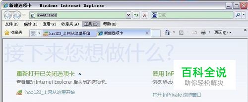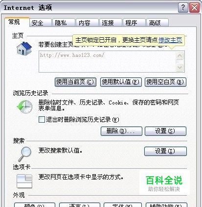 第二步,选择“工具”下拉菜单中的“Internet选项”,出现“Internet选项”窗口。