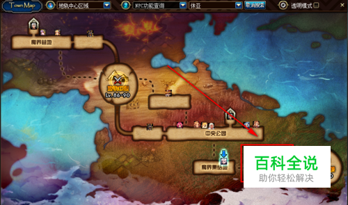 打开小地图,装备升级的地方就在魔界集结地,如图红框中有一个“斗气改造机”,如果没有出现这个地图的话,可以点击NPC“休亚”,点击“任务”,完成“休亚”的成就任务之后,这个“斗气改造机”这边的地图就开了