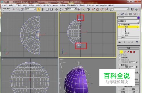 回到顶点层级,将半球的最上方和最下方的两个点选中,
