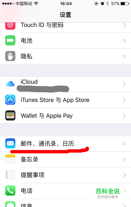 打开手机中的“设置”,打开设置中的“邮件、通讯录和日历”选项。