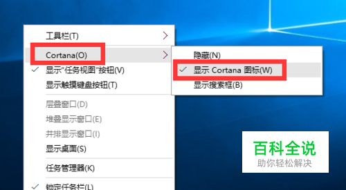 方案一:将“Cortana语音助手”最小化: 右击任务栏,从弹出的右键菜单中选择“Cortana”-“显示Cortana图标”项,即可将任务栏左下角的“Cortana”搜索框变成图标显示。