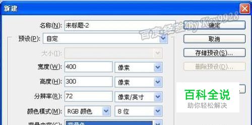 打开Photoshop,新建一空白页面,如400px*300px,并将背景色改为黑色: