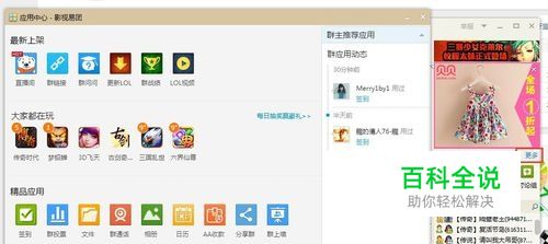 然后点击右侧的更多以后弹出来了一个群应用的大框;