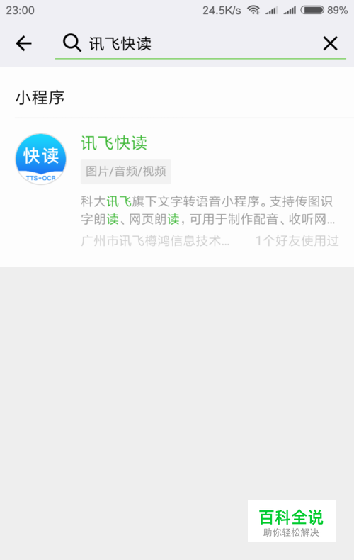 点击右上角的放大镜,输入“讯飞快读”,并搜索。在搜索结果中点击讯飞快读。