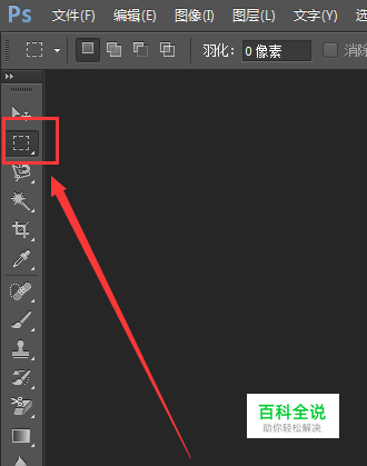 矩形选取工具在工具栏的第二个位置,我们看一下,下图中红色框里的工具就是矩形选取工具。