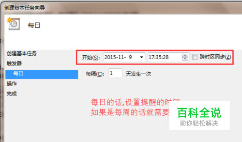 如果选择的是 每日,在每日设置中可以设置是否 每天都执行这个消息提示或者设置 每隔几天设置提醒消息。选择每日提示消息后, 就需要设定某个时间点开始启动这个消息提示功能,时间确认到 秒。