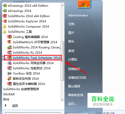 在开始菜单中,solidworks工具菜单中找到“solidworks Task Scheduler 2014”,打开他,如图所示