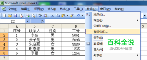 然后,鼠标点击“数据”,选择有效性。