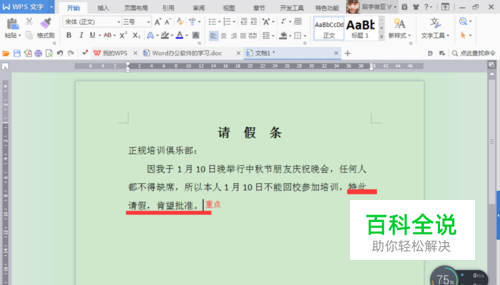 用办公软件Word怎么制作请假条