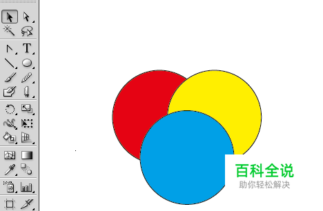 用椭圆工具绘制三个叠加的圆形,这个叠加的图形将作为对象演示路径查找器面板的使用。