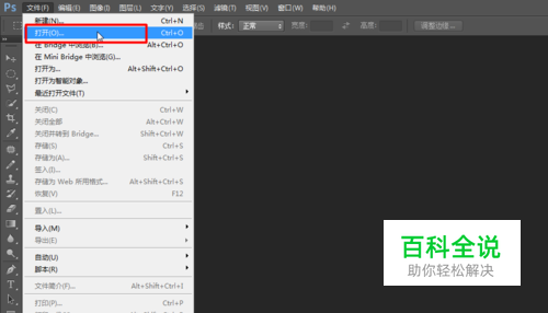 电脑打开PhotoShop软件,点击文件菜单,如图所示:
