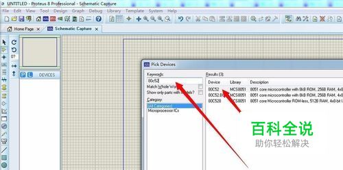 在元件搜索栏输入80c52,在右方箭头双击元件
