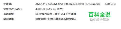 进入属性后就可以看到关于计算机的基本信息,找到内存一行,后面的括号即是可用内存