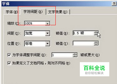 在“间距”下拉列表中选择字符间距的类型(例如选择“加宽”)。在“磅值”文本框中选择或输入字符间距的数值,设置完毕单击“确定”按钮即可。