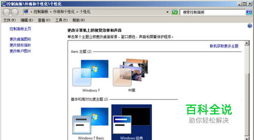 鼠标右击桌面,单击个性化,打开个性化窗口