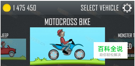 前期准备 游戏开始都是为大家准备的吉普车,这款车性能很不好。用它一遍一遍的跑田园地图吧,直到攒够金币买下一辆车,就是越野摩托车了,越野摩托车的性能各种狂飙,足够玩儿很长一阵子了。当然你得提升越野摩托车本身的各种性能,中间有兴趣可以解锁其他场景,沙漠,北极,高速公路。 如果想要快速攒金币,那么前期一个很重要的场景就必须得解锁——月球。游戏本身把重力考虑进去了,所以用越野摩托车跑月球可以通过几乎不间断的跳跃和翻转来获得金币,跑的不是很远,但每次都能获得十几万的金币。