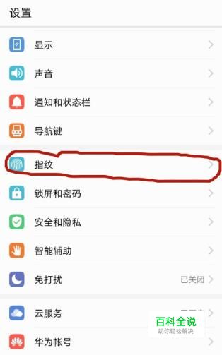 在设置页面,找到“指纹”选项,点击并进入,如图所示。