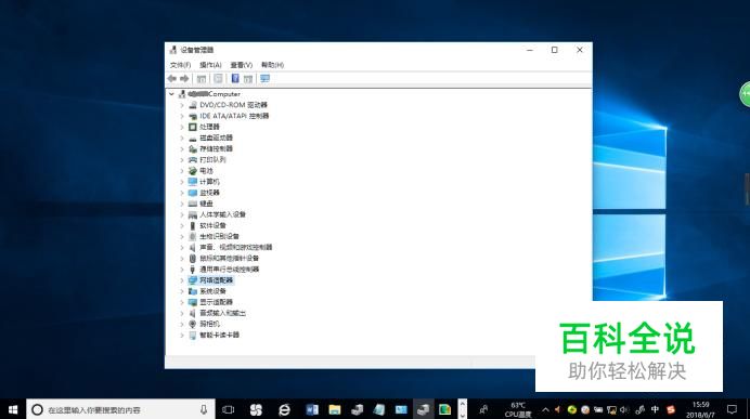 弹出"设备管理器"对话框,如图所示。展开树形目录结构,点击"网络适配器"项。