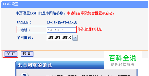 第2步、修改管理IP地址 登录路由器的管理界面,点击 网络参数 >> LAN口设置,修改IP地址(如主路由器的IP地址是192.168.1.1,则副路由器修改为192.168.1.2),保存并重启路由器。
