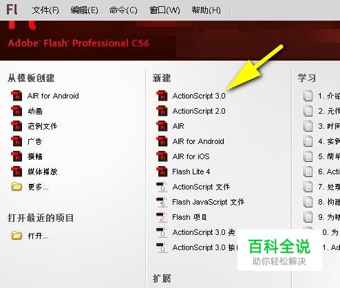 下面,举例演示其制作方法。比如,制作一个圆形从左到右移动的形状补间动画。 首先,我们启动FLASH软件,打开界面,再新建文档。
