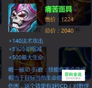 关键装备解析: 痛苦面具:该装备有着冷却缩减、法术攻击、最大生命和法术穿透多种属性加成,让女娲在前期的能力较为平衡。该装备的被动在技能命中敌人时会附带目标当前生命百分比的法术伤害,能大幅度提高女娲技能的伤害。