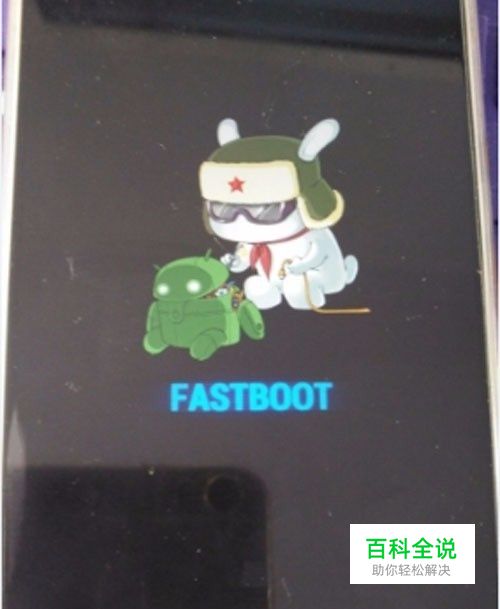 二:小米5开始刷回官方recovery的具体步骤: 1:手机先进入FastBoot模式:进入方法为:手机在关机的状态下,按住手机的音量下键 + 电源键不要松,持续数秒即可进入,当屏幕中出现一只米兔正在修安卓机器人则已经进入FastBoot模式。