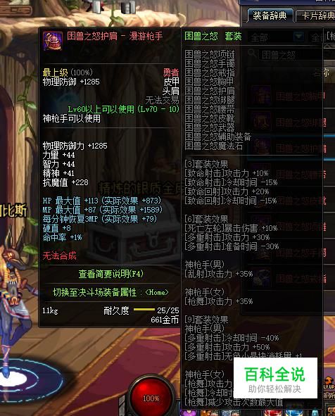 头肩部位可以选择85级SS板甲“魔战无双肩甲”,可以提升2级的BUFF等级,但是其只能通过在深渊派对中概率获得。