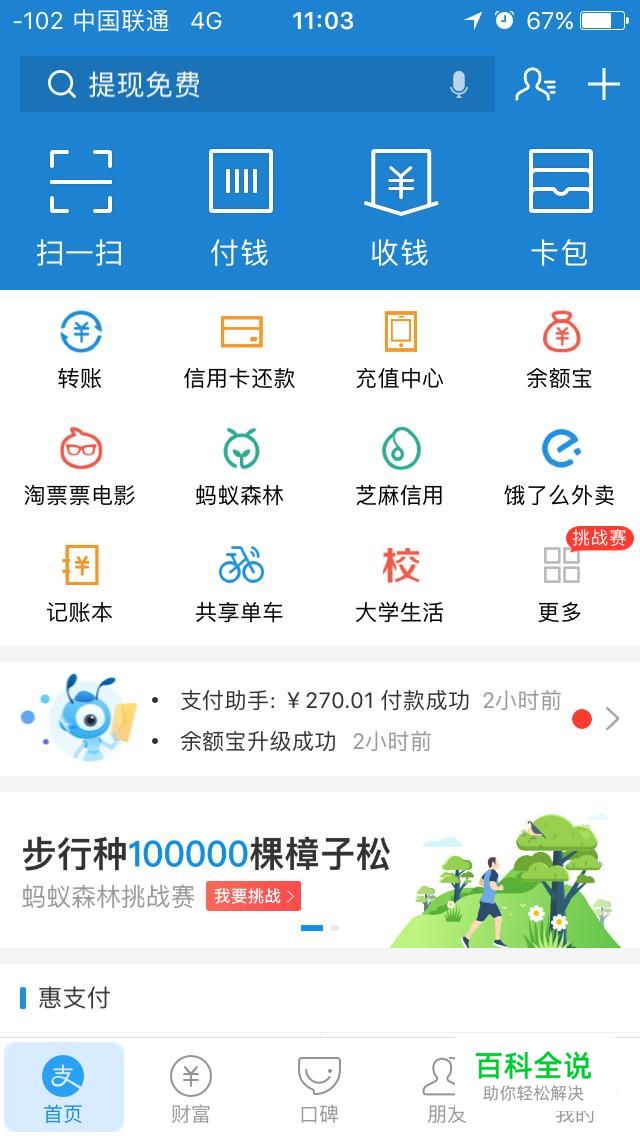 首先我们去应用商店或者App Store里下载安装支付宝,然后点击进入支付宝的首页。