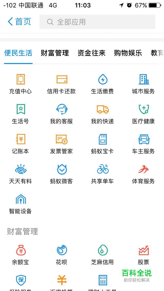 然后我们在首页的中间位置找到那个九个方框合在一起的图标,点击进去,可以找到更多的服务号。