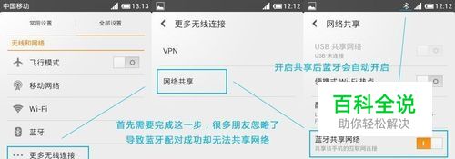 1、设置WT19i,系统设置——无线连接——网络共享——开启蓝牙共享网络(这步很多人忽略,导致无法上网)。
