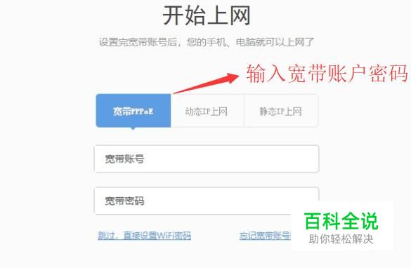 然后回进入宽带账户的登录界面,我们输入运营商给我们的宽带账户以及密码即可,如下图所示