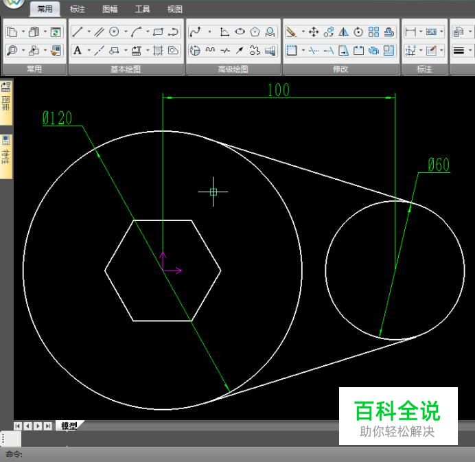 这里主要以图中六边形为例,六边形绘制好以后,测量一下最长对角线(外接圆直径)的尺寸,发现尺寸不对,需要修改;