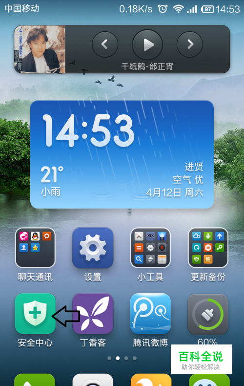 解锁手机,进入主页面,选择“安全中心”。