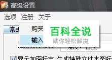 点击“高级设置”,进入该页面,点击“注册”,选择下拉选项中的“输入注册码”。