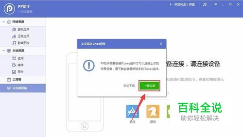 1)打开电脑端PP助手,会提示需要安装iTunes的,点击【一键安装】后会自动下载安装的。
