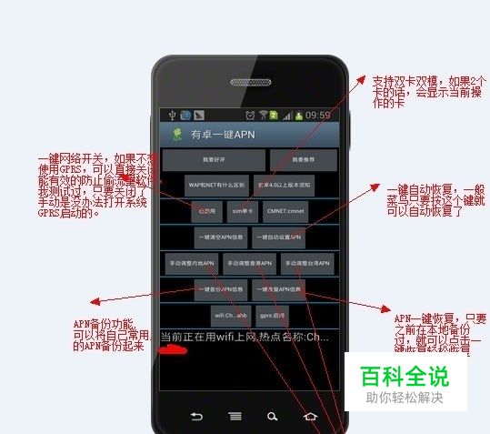 三星安卓手机最近移动网络一直不通,问了客服,说是接入点设置问题,从网上看了一下大家的评论,觉得"有卓一键APN"还不错,就安装一下,点击了一键自动设置,果然就能恢复上网了,现在把我使用的经验分享一下: 首先是几个最常用的功能: 对于一般的菜鸟,只要点击一键自动设置APN就可以恢复了。也能使用一键开关功能(上图标示),可以关闭GPRS功能,这样的话,可以有效的阻止流氓软件偷流量。也可以备份当前的APN(保存到本地,地址如下图:),在后面想使用的时候,点击一键恢复即可。 同时,对于高级用户,也可以采用手动选择,可以选择内地,香港,台湾的运营商APN。 对于4.0以上用户,和目前市面上其他第三方APN软件一样,都需要ROOT权限, 只要ROOT过的手机,点击加入后手机重启后就可以使用所有的功能了。 总体而言:相比其他的第三方APN设置,有卓一键APN的优点是使用简单方便,接入点,网络开关,APN接入点备份的功能都有,轻应用,没占多少内存空间,而且最主要是绿色无广告(安装过其他第三方APN的网友一定深有体会,经常有通知栏广告弹出来)。