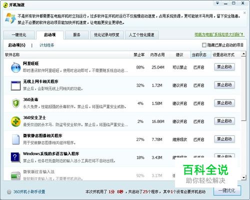 关掉一些伴随着Windows启动的程序及常驻程序 选择开始运行,输入msconfig进入系统配置应用程序,在启动栏关掉不必要的常用程序,不确定的程序不要乱关,以免造成 Windows错误或程序不能使用。完成后点击应用,重启后即设置成功。当然如果大家对这个不是很懂的话也没关系,有一款软件叫360安全卫士,里面的功能也很难全面,能够快速的优化启动。