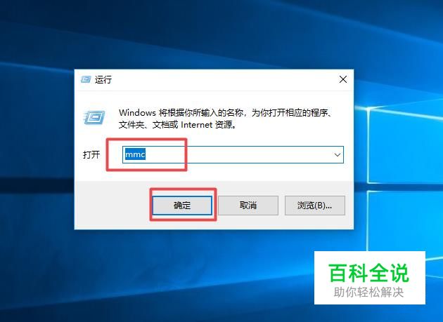 弹出的界面,我们输入mmc,然后点击确定;