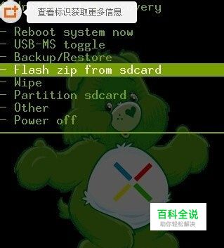 关机,按住Home小房子键的同时按开机键,即可进入recovery恢复模式,然后移动轨迹球到第四项,按下轨迹球选择进入“Flash zip from sdcard”