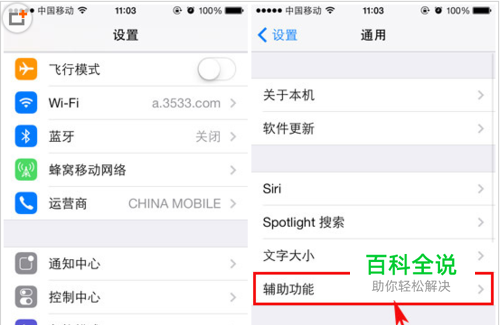 依次进入iPhone6 Plus【设置】-->【通用】-->【辅助功能】设置,如下界面图所示。