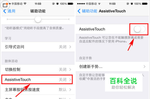 入苹果6 Plus辅助功能设置后,点击进入【AssistiveTouch】设置,开启AssistiveTouch手势操作功能后,小白点就开启了,如下图所示。