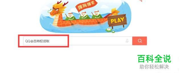 打开搜狗浏览器,通过搜狗搜索引擎搜索“QQ会员特权领取”。