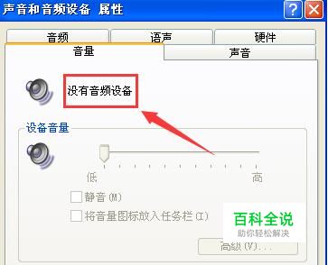 当我们打开电脑的时候,没有开机提示音,打开声音和音频设备属性提示没有音频设备,如图所示: