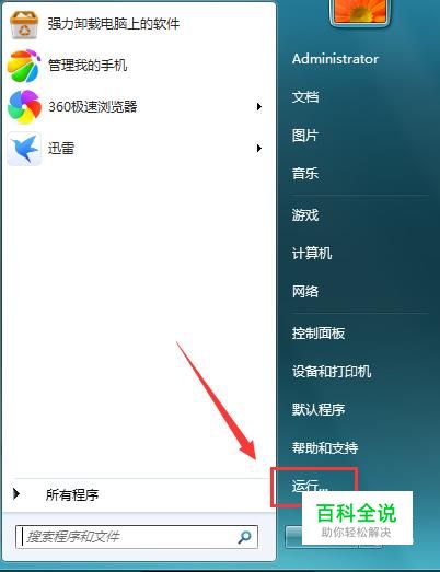 找到开始并点击在其内找到运行选项,如图所示: