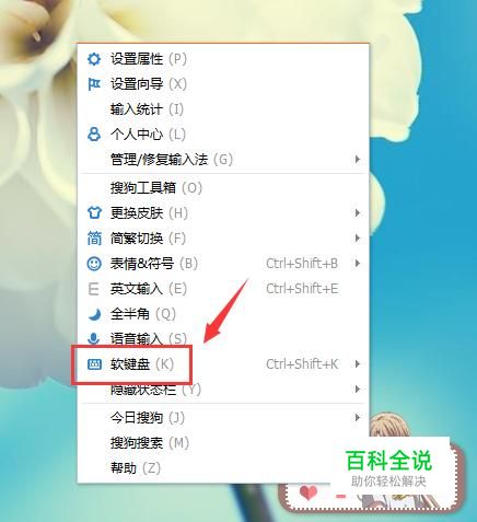 有些符号使用拼音输入是实现不了的,此时我们要在输入法上单击鼠标右键找到软键盘选项,如图所示: