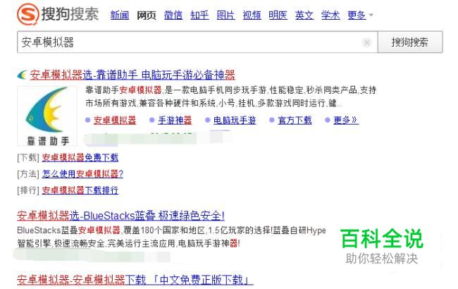 首先打开搜狗浏览器。在搜索页面输入:安卓浏览器。然后根据自己的爱好下载安装自己喜欢的安卓模拟器。