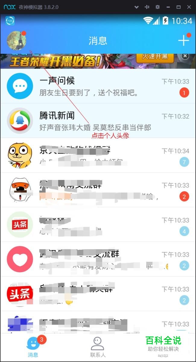 首先登录自己的qq,然后点击个人头像。如图所示: