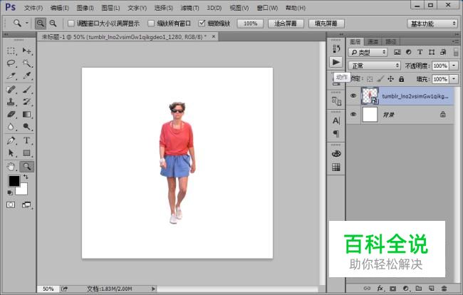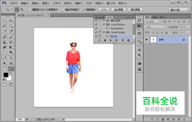 选定人物图层,打开动作面板,然后点击“播放选定的动作”按钮,并按提示点击继续即可。