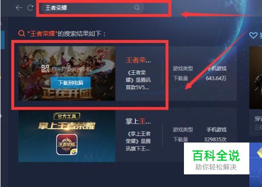 打开tgp过后在搜索框内输入“王者荣耀”,然后点击“下载到电脑”,如图。